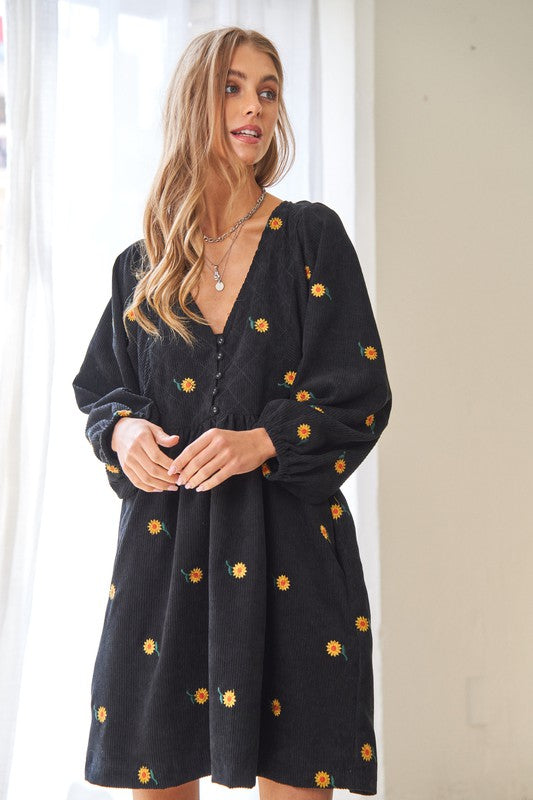 Corduroy Fabric Quilted Bib Henleystyle Mini Dress